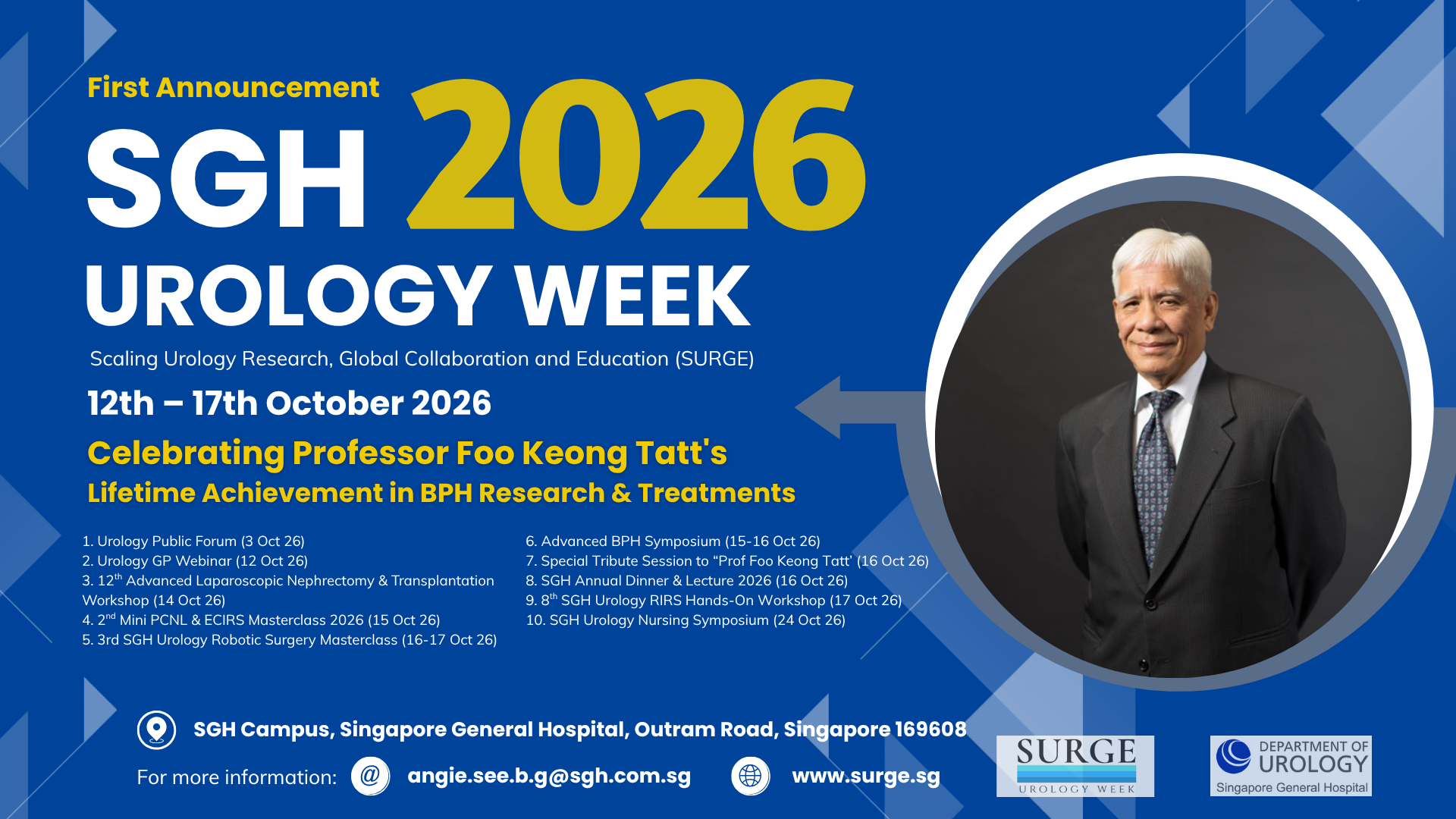 We will round off the week with the SGH Urology Annual Dinner and Lecture, a time to celebrate our shared achievements and friendships - and to look ahead together toward new frontiers in urology.